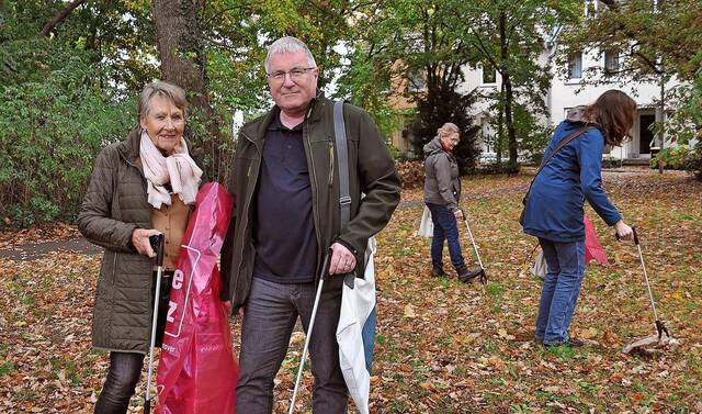 Alt-Laatzen putzt sich raus: Matthias Günther und Heide Schlensog wünschen sich einen schöneren Stadtteil und sammeln dafür auch Müll. Im Hintergrund sind Susanne Müller und Nicole Schreiber zu sehen.Fotos (2): Torsten Lippelt