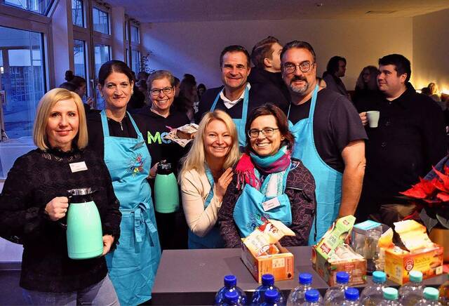 Die Organisation des Novembertees übernimmt traditionell der seit fast 30 Jahren bestehende Förderverein der Schule. Gemeinsam mit Schülerinnen und Schülern der Klasse 8G1 versorgten sechs Helferinnen und Helfer um Vorstandsmitglied Holger Brinkmann in der Cafeteria die Gäste mit Kuchen, Torten, Kaffee, Tee und Kakao. Gleichzeitig warben sie um Spenden. „Die Einnahmen von heute kommen unserer Fördervereinskasse zugute“, sagte Brinkmann.