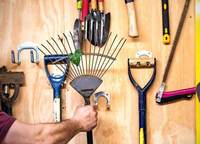 Zu guter Letzt ist auch die richtige Lagerung entscheidend. „Feuchtigkeit ist der größte Feind von Metallteilen, daher dürfen die Geräte nicht in feuchter Umgebung verstaut werden“, sagt der Gärtnermeister. Er empfiehlt einen trockenen und frostfreien Geräteschuppen oder Kellerraum. Schaufeln, Harken und Spaten sollten zudem an Wandhaken befestigt werden, sodass ihre Schneiden keinen Bodenkontakt haben. „Auf diese Weise bleiben sie rostfrei und behalten ihre Form“, erklärt Surburg. Kleinere Werkzeuge finden idealerweise in Regalen oder Schubladen Platz.Für Motorsägen und Rasenmäher empfiehlt der Gärtnermeister vor der Einlagerung, den Kraftstoffstand zu überprüfen: „Benzin sollte entfernt oder mit einem Stabilisator versetzt werden, um Verharzungen und Verschmutzungen zu vermeiden“, rät der Gartenexperte. Zudem sollte der Ölstand kontrolliert und bei Bedarf das Motoröl gewechselt werden. Dasselbe gilt für Zündkerzen und Luftfilter. Ein weiterer praktischer Tipp betrifft Akkugeräte: „Um die Batterien vor Tiefenentladung zu schützen, sollten sie mit etwa 50 bis 70 Prozent Ladung bei Zimmertemperatur im Haus gelagert werden.“