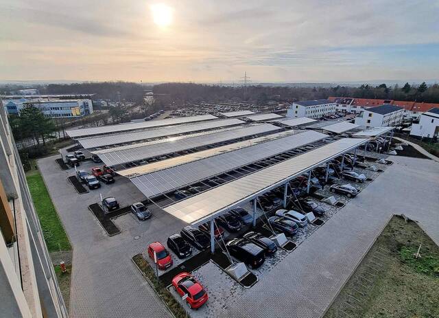 Deutsche Rentenversicherung hat einen Parkplatz mit 1752 Solarmodulen bestückt