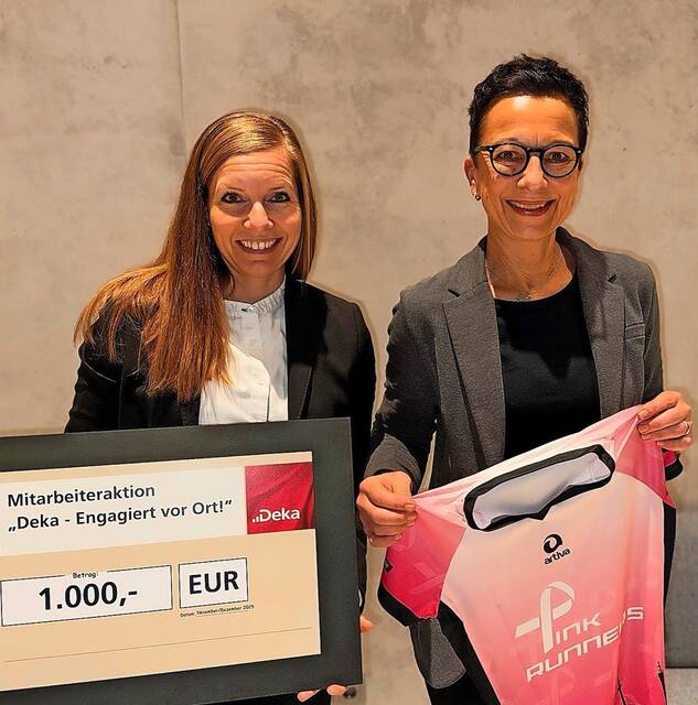 Mit einer Spende in Höhe von 1.000 Euro unterstützt die DekaBank den Verein Pinke Zitronen e.V. und damit die Brustkrebs-Laufgruppe „Pink Runners“ in Hannover. Die Förderung ist Teil der bundesweiten Aktion „Deka – Engagiert vor Ort“, mit der die DekaBank das gesellschaftliche Engagement ihrer Mitarbeitenden würdigt und stärkt.