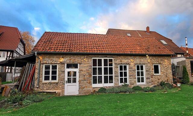 Küche und Wohnzimmer sind ebenso saniert, wie die Decken und der Lehmputz. Mit ihrem 24-jährigen Sohn Paul hat sie die Stallwand mit Naturbruchstein verziert und verfugt. Ihre Tochter Emma (22) hilft, Material zu transportieren und bei Abrissarbeiten. Zwei Tage lang wurden nun zudem per Container flächendeckend bis zu 30 Zentimeter Boden abgetragen, die das Grundstück unerwünscht erhöhten. „Da tun Hände, Beine und Rücken schon weh.“
