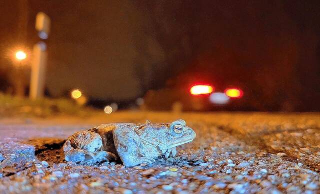 Nach ihrer Winterstarre vor allem in der Dämmerung seit wenigen Tagen auf Hemmingens Straßen unterwegs: viele Erdkröten, wie hier bei Wilkenburg.Foto: Torsten Lippelt