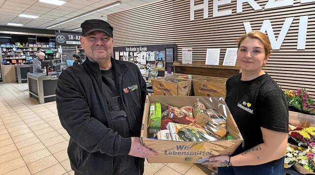 Das Konzept sieht vor, dass Interessierte die Kisten für 50 Euro erwerben können. Edeka verdiene daran nicht mehr als sonst, versichert Marktbetreiberin Janina Schäfer – im Gegenteil: Gemessen am Warenwert lege der Markt noch einige Euro drauf. „Wir machen das, um die Menschen zu unterstützen”, ergänzt sie.