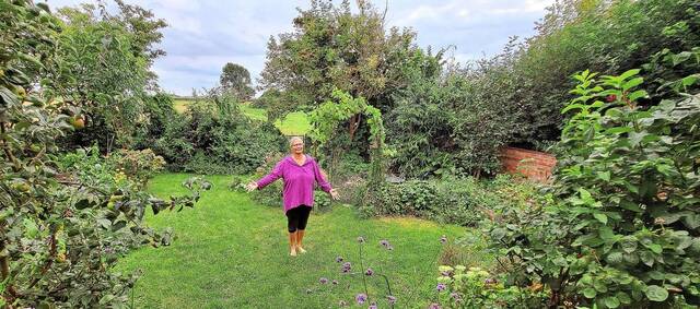 Im Garten hinter ihrem Haus in Laatzen-Gleidingen hat Stephanie Richter auf rund 600 Quadratmetern eine naturnahe Fläche als Rückzugs- und Futterort für Insekten, kleine Reptilien, Vögel und Igel geschaffen. Es gibt Obstbäume, eine Hecke aus Weißdorn und Schlehe, Thymian, Dost, Salbei und Zitronenmelisse.