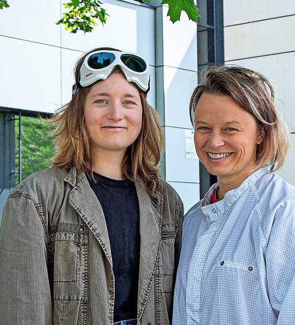 Bringen Wissenschaft und Kunst zusammen: Physikerin Lea Richtmann (r.) und Künstlerin Miriam Ebbing.Foto: Laurenz Kötter