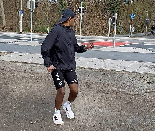 Die Idee dafür kam dem 27-jährigen Saimuson Manivannan spontan in den Kopf, einen Tag zuvor und mit wenig Vorbereitung. Doch die Gefahren eines solchen Vorhabens waren dem Medizinstudenten aus Hannover bewusst: „Ich habe Markus Jürgens, den Weltmeister im Rückwärtsmarathon, angeschrieben, und der hat mir auch dringend davon abgeraten“, sagt er. „Weil das Verletzungsrisiko einfach viel zu hoch ist. Man kann stürzen, man kann sich die Sehnen und Gelenke verletzen.“ Trotzdem entschied er sich für den Lauf: „Weil ich so vernarrt war und das mittlerweile so ein Ego-Ding geworden ist.“