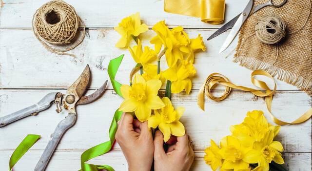 Aber auch mit dem klassischen Gelb kann man im Frühling punkten. Besonders bekannt, beliebt und fast überall erhältlich ist die Narzisse „Tete a Tete“. Ihre Blüten sind vergleichsweise klein, und sie wird in der Regel lediglich etwa 30 Zentimeter hoch. Laut Kruse ist dies die ideale Größe zum Basteln. Die zarten Blüten lassen sich gut mit Hornveilchen oder anderen Frühjahrsblumen kombinieren.