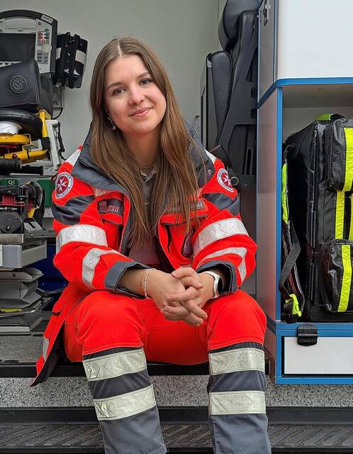 Jocelyn Gehring hatte schon als Schülerin einen ersten Kontakt zur Johanniter-Unfall-Hilfe (JUH). Im Rahmen eines Schulprojektes arbeitete sie eine Woche lang beim Kältehilfebus. Sie erinnert sich noch gut daran: „Die Arbeit dort und der Kontakt mit den bedürftigen Menschen hat mich sehr beeindruckt.“ Als sie nach ihrem Abitur noch nicht wusste, wie es weitergehen soll, nutzte sie die Erfahrung und bewarb sich um einen BFD-Platz. Auch sie qualifizierte sich zur Rettungssanitäterin und arbeitete auf Sanitätsdiensten, im Bevölkerungsschutz und im Hausnotruf-Einsatzdienst. Dort erlebte sie gleich zu Beginn einen Menschen mit einem schweren Schlaganfall. Nach diesem Einsatz bekam sie in mehreren Gesprächen Hilfe von Kollegen der Psychosozialen Notfallversorgung. „Das war wirklich gut“, sagt sie und hatte zur Folge, dass die 20-Jährige mit jedem Einsatz mehr die Arbeit im Rettungsdienst „lieben lernte“. Sie will im Blaulichtbereich bleiben.