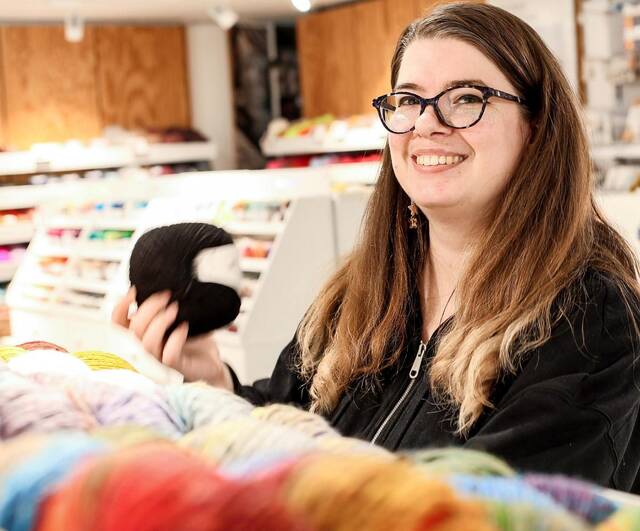 „Es gibt viele versteckte Talente“, sagt Filialleiterin Leichnitz. Ihr Team aus 14 Frauen und zwei Männern unterstützt die Kundinnen und Kunden. Wenn jemand nach Transparentpapier frage, müsse man erstmal in die Tiefe gehen. „Zum Drucken? Für Origami, Teelichter oder Laternen?“ Bei Wollprojekten ist Lisa Wienholz die Ansprechpartnerin – und manchmal auch Übersetzungshilfe. „Strickschriften haben eine eigene Sprache“, sagt die 34-Jährige, die Glitzer-Make-up trägt.