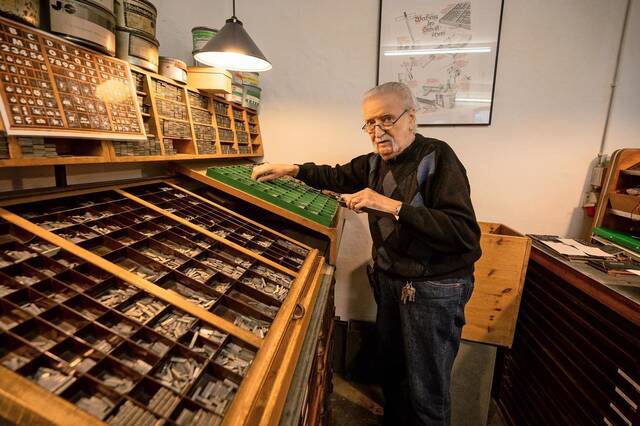 Der frühere Drucker steht zwischen alten Setzkästen, in denen Tausende kleiner Bleilettern liegen. „Das Setzen habe ich schon als Kind gelernt“, sagt er, „mein Vater hatte eine Druckerei.“ Dann fügt er Lettern mit geübten Fingern in einen sogenannten Winkelhaken ein. Spiegelverkehrt natürlich, damit dann im Druck das gewohnte Schriftbild erscheint.
