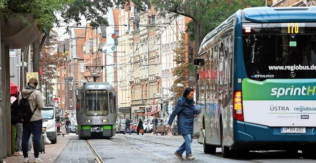 Bus und Bahn auf der Limmerstraße: „Wir wollen weitere Fahrgäste mit dem eTarif gewinnen.“Foto: Christian Behrens (Archiv)