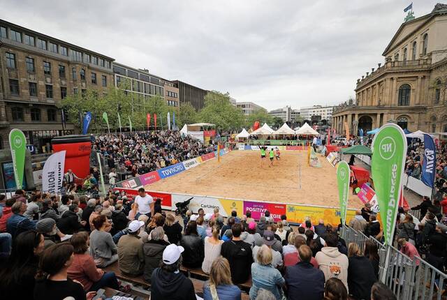 Noch wirkt der Opernplatz ruhig, doch in wenigen Wochen fliegen hier wieder die Bälle durch die Luft. Vom 24. bis 26. April verwandelt sich das Herzstück der Innenstadt erneut in ein Paradies für alle Volleyball-Liebhaberinnen und Liebhaber. Hunderte Tonnen Sand und riesige Tribünen schaffen eine Arena, in der sich Spitzensport und Stadtleben direkt begegnen. Drei Tage lang pritschen, baggern und hechten die Spielerinnen und Spieler um Preisgeld und wichtige Ranglistenpunkte für die Landes- und die deutsche Beachvolleyball-Meisterschaft.