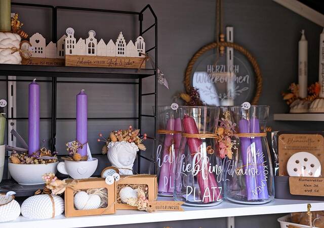Für Charleen Promrak, eine andere Kundin, die nur wenige Straßen weiter wohnt, sind Nähe und Verfügbarkeit ein Pluspunkt. „Es ist super, dass das Lädchen sonntags geöffnet hat. Wenn wir zu Kaffee und Kuchen eingeladen sind, kaufe ich manchmal vorher schnell eine Kleinigkeit als Mitbringsel.“ Insgesamt gebe sie sicher 20 bis 30 Euro im Monat für Geschenke und Deko aus dem Schränkchen aus. Was sie besonders schätzt: „Man sieht, dass die Sachen mit Liebe gemacht sind.“