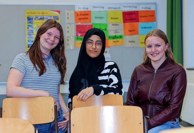 Ist es sehr wohl, wie uns Mitschülerin Rocaya Mohammadi (18) schilderte: „Mir hat ein Mann beim Shoppen schon mal gesagt ‚Verpiss dich aus unserem Land‘. Ich war 13 und sehr erschrocken darüber.“ Als Neunjährige kam sie mit ihren Eltern aus Afghanistan nach Deutschland und ist „glücklich über die Möglichkeit, mich weiterzubilden. Nur weil ich ein Kopftuch trage, heißt es noch lange nicht, dass ich nicht für Feminismus und die Rechte von Frauen stehe“. Zum Schluss präsentierten die Schülerinnen und Schüler der Medien-AG, wie sie das Thema Demokratiebildung filmisch umgesetzt haben – indem sie Pizza belegen.
