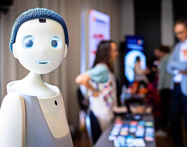 Macht ein KI-Roboter das Rennen bei der Oberbürgermeisterwahl in Hannover? Dieser hier wohl nicht: Navel hat andere Aufgaben und wurde auf dem Innovationsforum Pflege in Hannover vorgestellt.Foto: Moritz Frankenberg/dpa