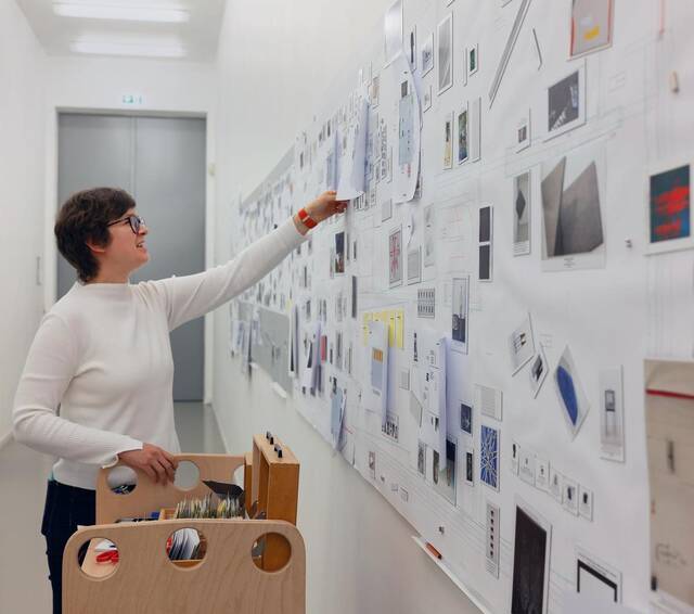 Das Konzept ist inzwischen weit gediehen – und nimmt breiten Raum ein. Um einen übersichtlichen Gesamtblick auf die Schau zu haben, hat Schube die Pläne der Ausstellungssäle nebeneinander in den langen Flur vor ihrem Büro gehängt. Die Kunstwerke, die in der engeren Wahl sind, hat die Kuratorin in magnetischen Miniaturversionen parat, die frei über die Fläche verschoben werden können.