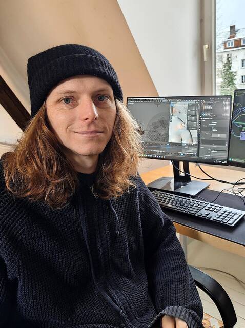 Konrad Schlaich (*1995) studierte Sozial- und Kulturanthropologie, Middle Eastern Studies und Arabisch in Berlin und Beirut (Libanon) und schloss 2025 das Regiestudium an der Filmuniversität Babelsberg ab. Seine Kurzfilme liefen bei Festivals im In- und Ausland. 2025 wurde sein Kurzfilm „Parzellen des Glücks“ für das namhafte Filmfestival Max Ophüls Preis ausgewählt. Konrad Schlaich ist seit kurzem auch als Produzent tätig.Sein Interesse gilt vor allem hybriden Formen von Dokumentation und Fiktion. Von Juli bis Dezember 2026 wird der Filmemacher in Hannover an einem fiktionalen Kurzfilm arbeiten. Er handelt von zwei begeisterten Gamern, die eine Ausbildung bei der Bundeswehr beginnen. In Gefechtssimulationen erzielen sie außergewöhnliche Leistungen. Auf einem Trainingsmarsch stellt sich jedoch heraus, dass die Realität ungleich gefährlicher sein kann.