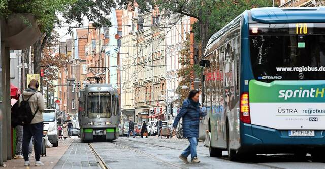 Bus und Bahn auf der Limmerstraße: „Wir wollen weitere Fahrgäste mit dem eTarif gewinnen.“Foto: Christian Behrens (Archiv)