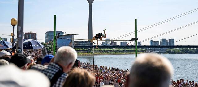 Der Stabhochsprungwettbewerb zu den Finals 2026 kommt nach Hannover. (Hier im Bild: der Stabhochsprungwettbewerb bei den Finals 2023 am Rheinufer in Düsseldorf)Foto: City-Press