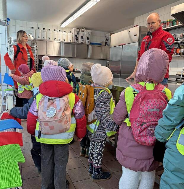 Dienstag, 10.30 Uhr. Michael Jakobson empfängt die Kinder und ihre Erzieherinnen und lädt zu einer Besichtigung der Dienststelle ein. Als erstes geht es in die große Küche, wo in der Winterzeit von den ehrenamtlichen Helferinnen und Helfern der Verpflegungsgruppe jeden Montag, Mittwoch und Freitag gekocht wird, um bedürftige Menschen in der Innenstadt von Hannover mit warmem Essen und heißen Getränken versorgen zu können. „Die letzten Tage gab es erst Grünkohl mit Kassler und dann Spaghetti Bolognese“, erzählt Michael Jakobson. Grünkohl? Naja… Aber die Nudeln hätten sie auch gegessen, da sind sich die Kinder einig.